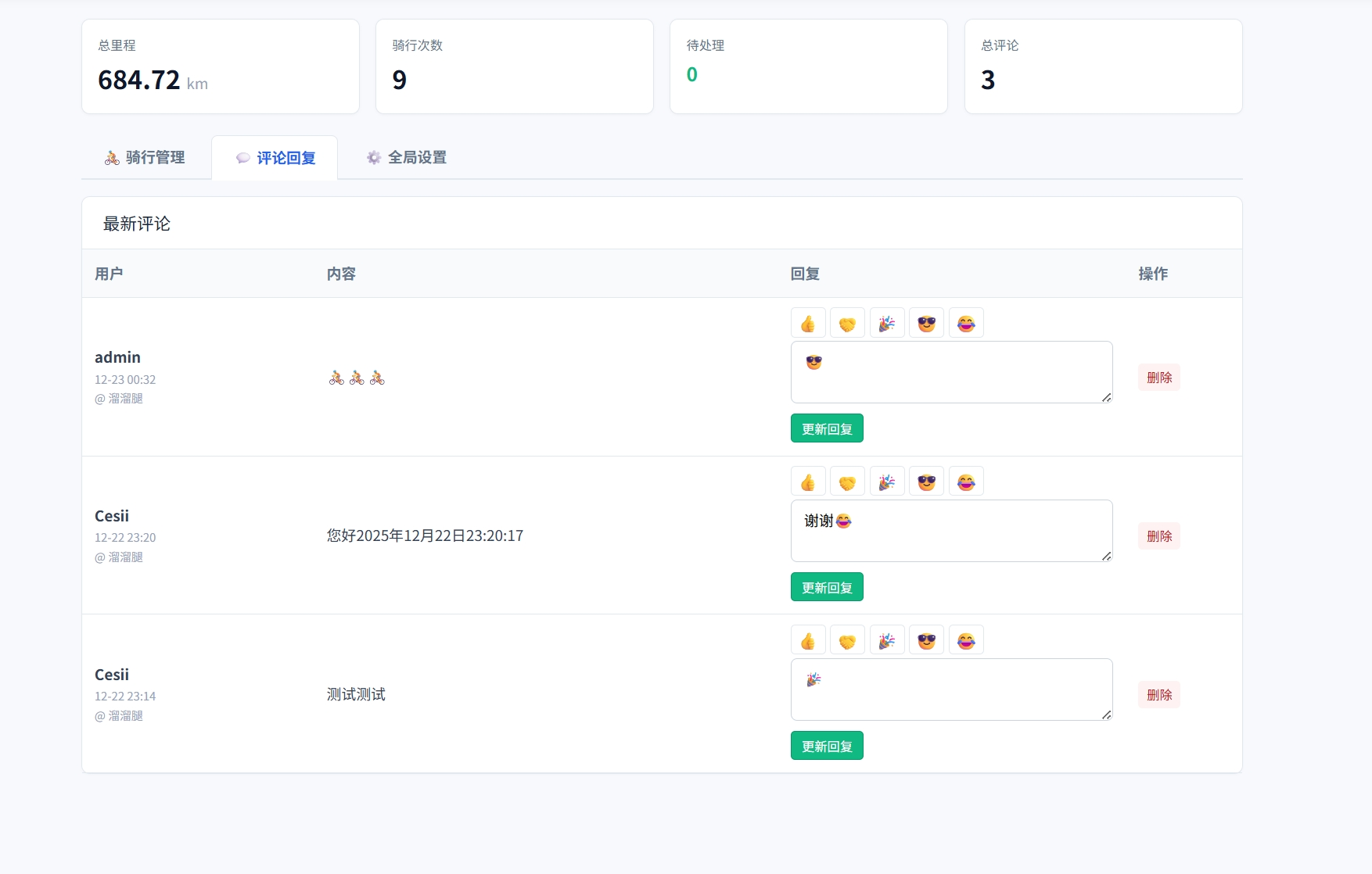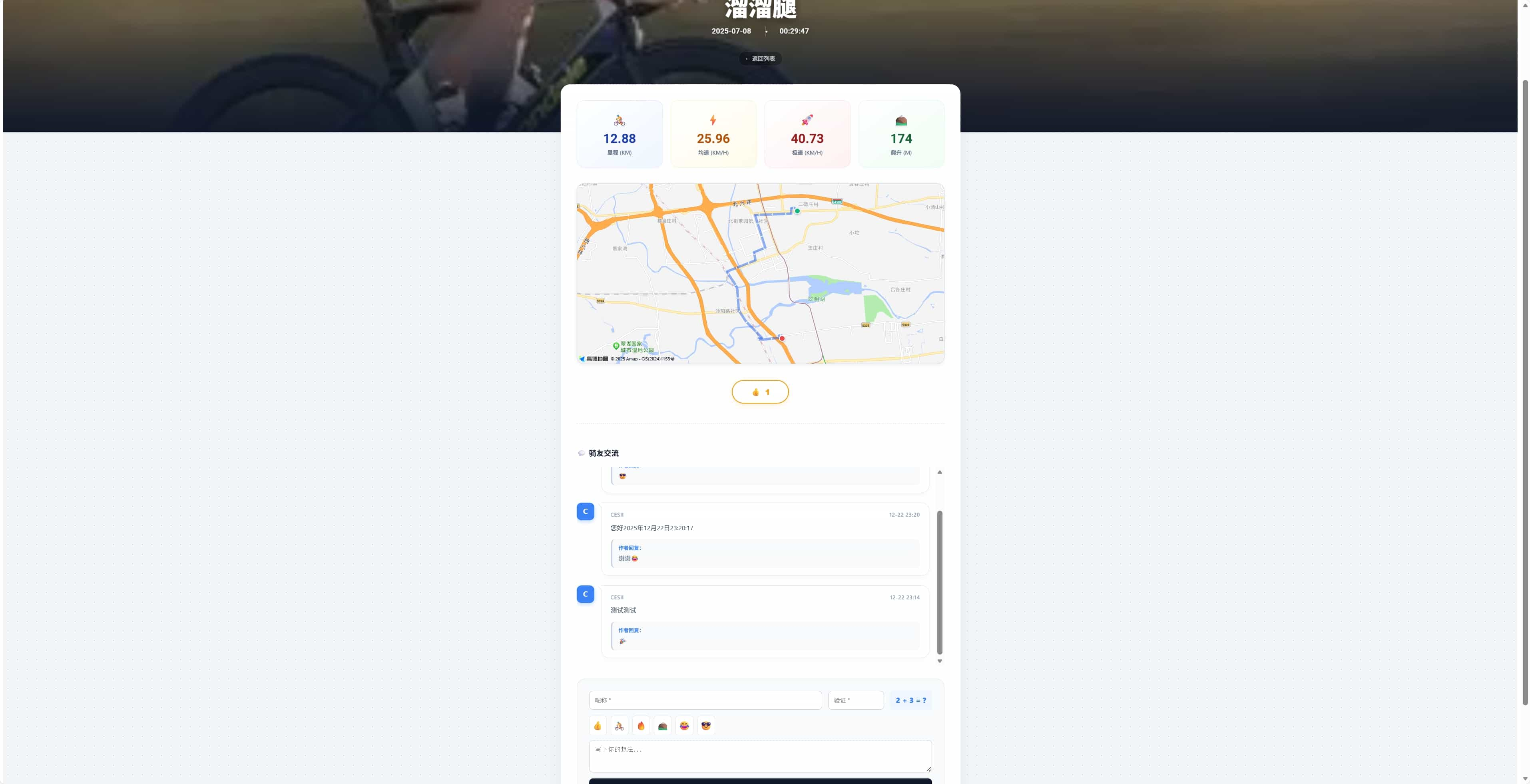 互动社区:内置独立的评论系统,支持表情包快捷输入,管理员可在后台直接回复骑友留言,增强社区粘性。